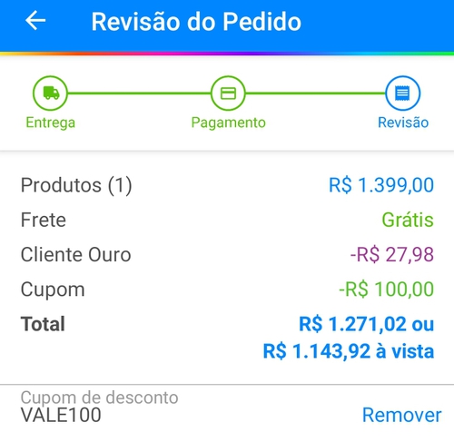 R$ 1.271,02 Parcelado em até 10x sem juros.