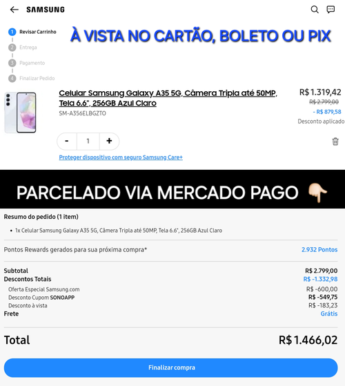 Ontem foi uma luta pra chegar no valor no a35 com o relógio fit 3 e cartão sd... E pra no final dar pagamento recusado... Meu cartão por algum motivo não passa nesse site nem ferrando.