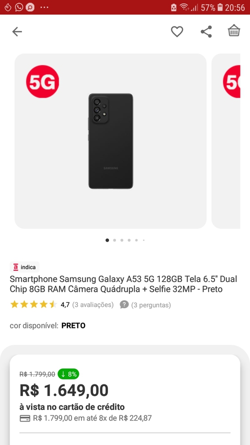 [APP] Smartphone Samsung Galaxy A53 5G 128GB 8GB RAM
