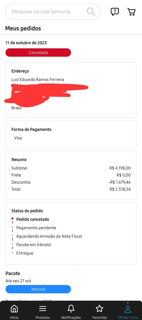Qual é a da samsung cancelando os pedidos? Dessa vez não foi nenhum bug, pelo jeitobestão pegando empréstimo a juros 0.