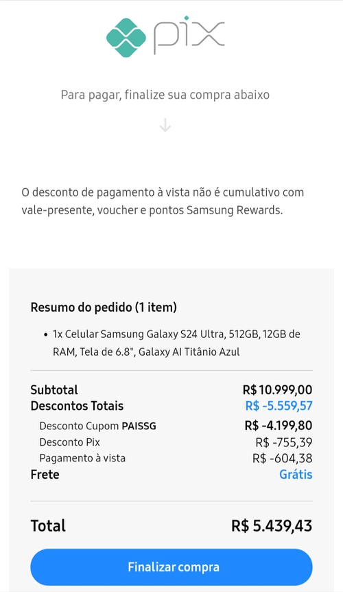 Gente consegui comprar esse S24 ultra de 512 de ram na cor dourada por 5439 a vista no pix estou muito satisfeito e feliz porque conseguir.