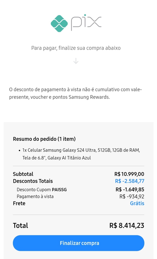 Galera, no meu celular (A51) não deu certo, mas no da minha esposa (S20 FE) deu certo colocando o Z Fold 6 no carrinho com o S24 Ultra. Ficou R$ 5.439,34 no a vista para o S24U, aí foi só remover o ZF6 do carrinho e o desconto persistiu.