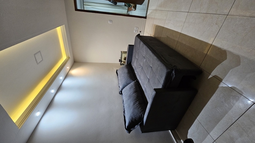 Então, finalmente chegou, mas é um sofá cama, com almofadas removíveis. Como sofá da sala, talvez fique um pouco simples, mas é bem útil e vale os 750 reais pago.