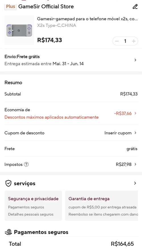 Aqui saiu por 155,50 usando o cupom pelo pix