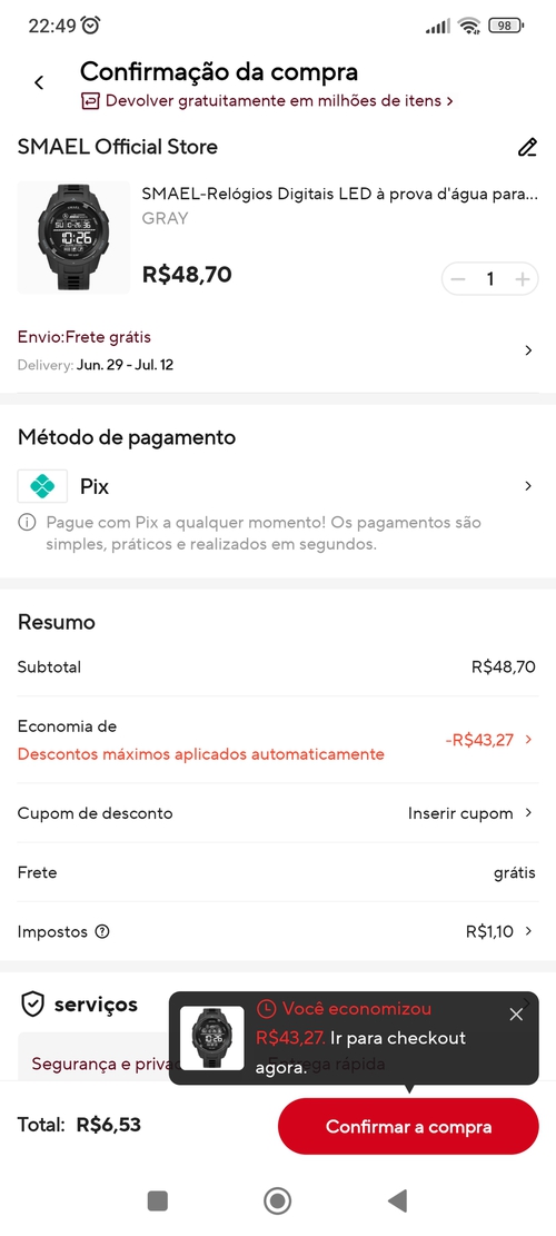 [App/Taxa Inclusa/Moedas] Relógio Digital Smael 8105