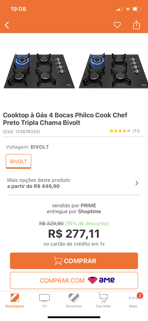 [APP - À VISTA] Cooktop à Gás 4 Bocas Philco Cook Chef Preto Tripla Chama Bivolt