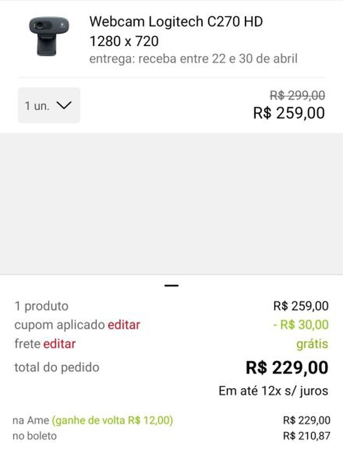 Também fiz 2 contas extras, uma pra cada compra ;)
