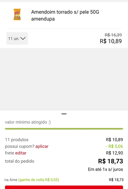 Para os outros sabores busque por "amendupa". Estoque regional. Adicione 11 unidades para aceitar o cupom APPL. Sem o cupom APPL fica no valor de R$0,91 considerando 8 centavos do AME. Frete grátis para retirar (desconsidere o frete na imagem).