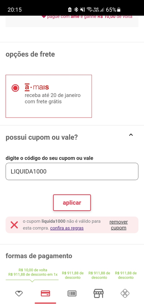 Aqui não funcionou o cupom