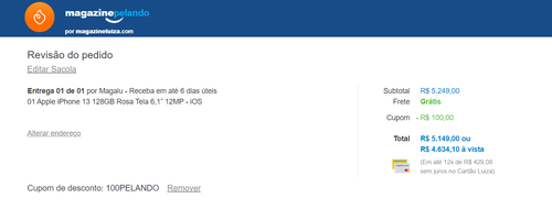 c. ouro + magalupay R$ 4.526,74, não testei se dá certo com esse cupom.