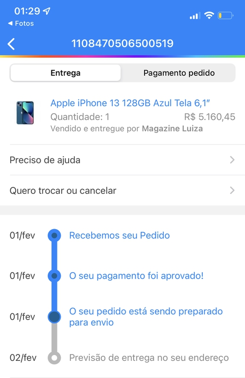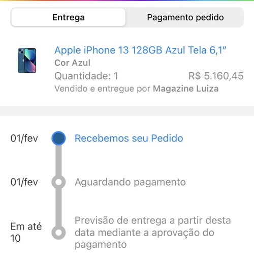 Fiz a compra há poucos minutos pelo app e só funcionou para o aparelho na cor azul galera