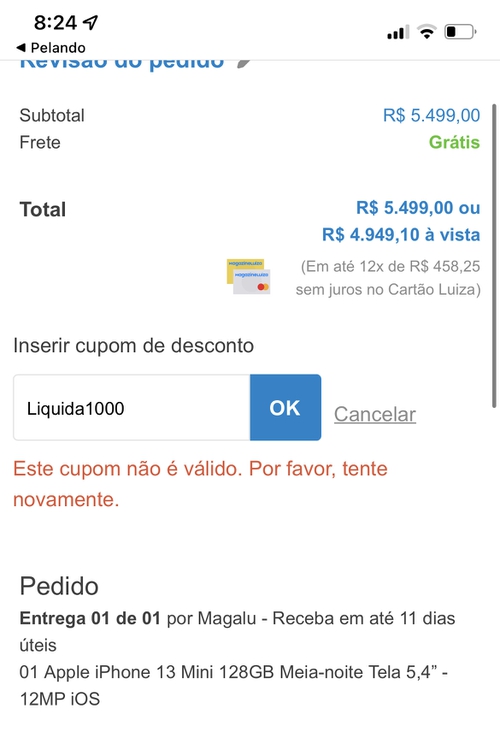 cupom funcionou aq mas n fica nesse preço nem com magalupay