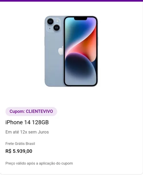 Apple iPhone 14 128GB Azul Tela 6,1" 5G Câm. Traseira 12+12MP Frontal 12MP