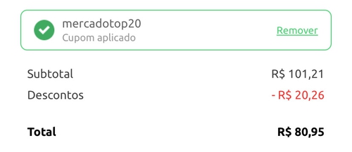 Aqui apareceu cupom adicionado em verde, mas o preço final não alterou nem 1 centavo. Se mostra aplicado, mas com "0" desconto.