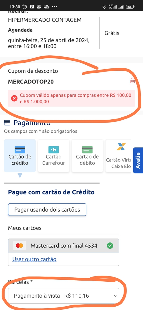 Comigo o mesmo problema, não aplica, carinho somando mais de 400