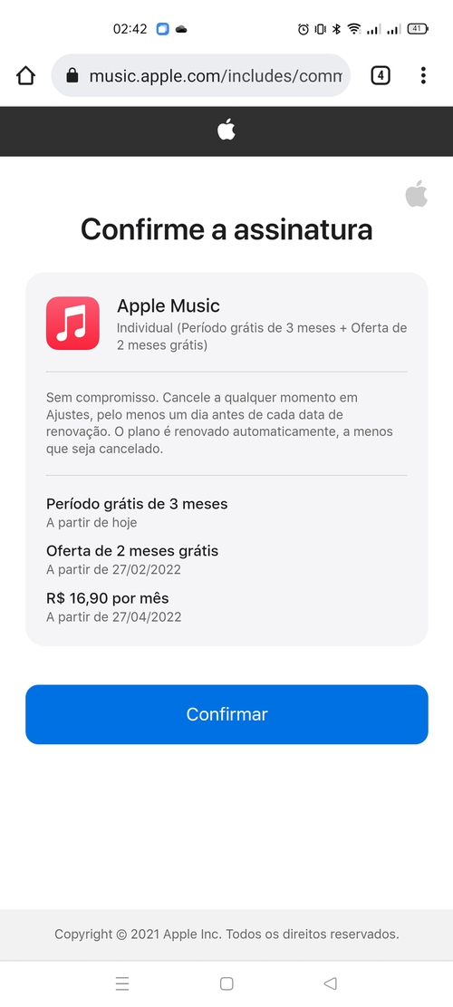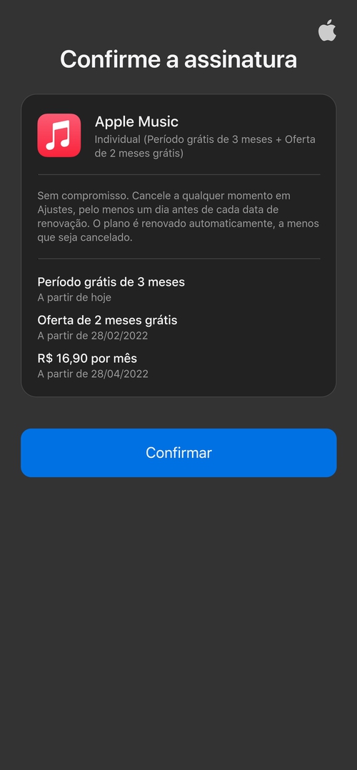 isso valido pra qualquer periodo gratis de serviços da apple.