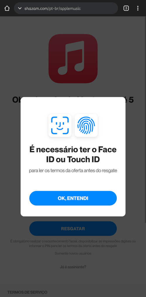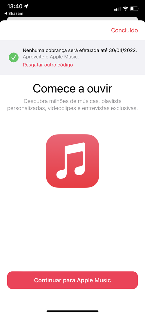 Pelo link do Shazam que resgata os 5 meses de Apple music. Aqui deu certo.