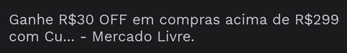 Aproveite R$30 OFF em compras acima de R$299 com Cupom no Mercado Livre