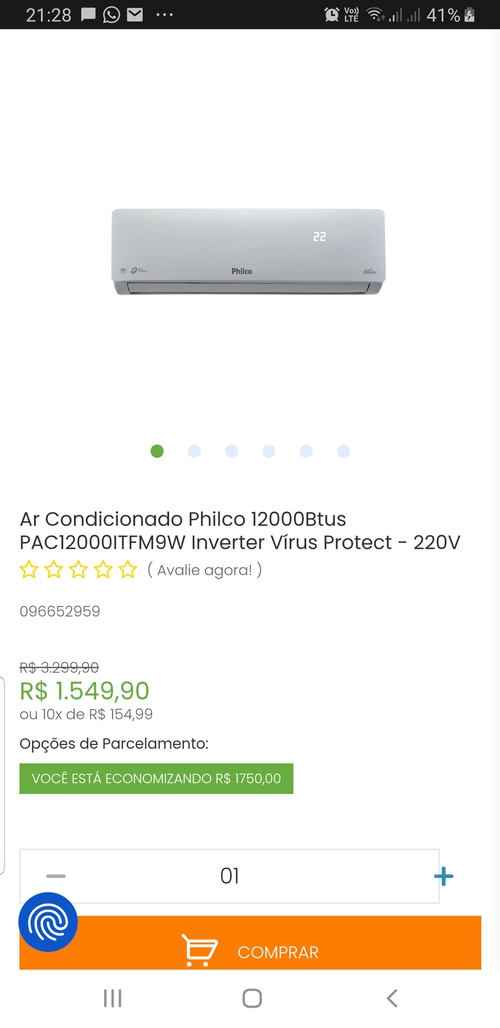 Ar Condicionado Philco 12000Btus PAC12000ITFM9W Inverter Vírus Protect - 220V
