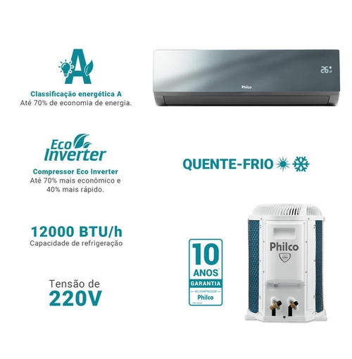 Ar-Condicionado Split 12000BTUs Philco Quente/Frio Titanium Inverter