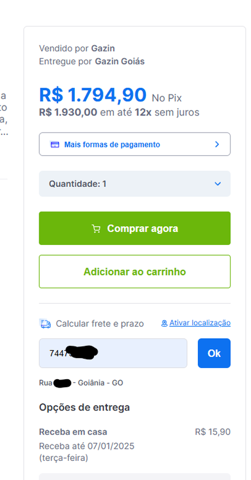 Moro em Goiânia e o frete ficou 15 reais, tô querendo pegar