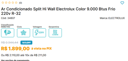 Peguei um de 18000 btu para sala e um de 9000 para o quarto, ambos quent e frio, com wifi.