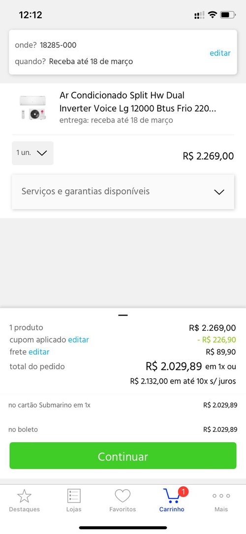 Não comprei isse mais comprei o quente e frio 12.000 por 1.936$ usei o cupom... Obrigado