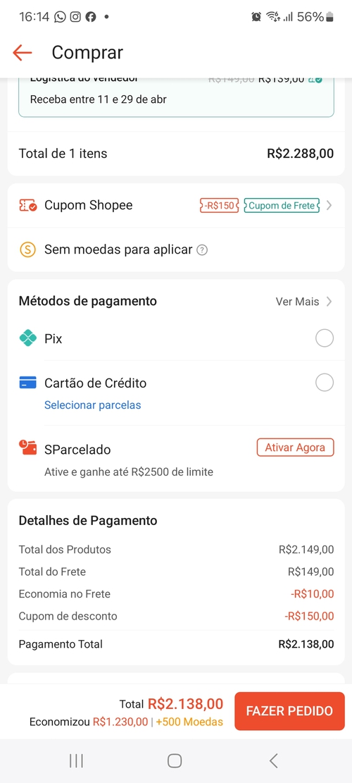 Aplicando o Cupom de R$150 OFF