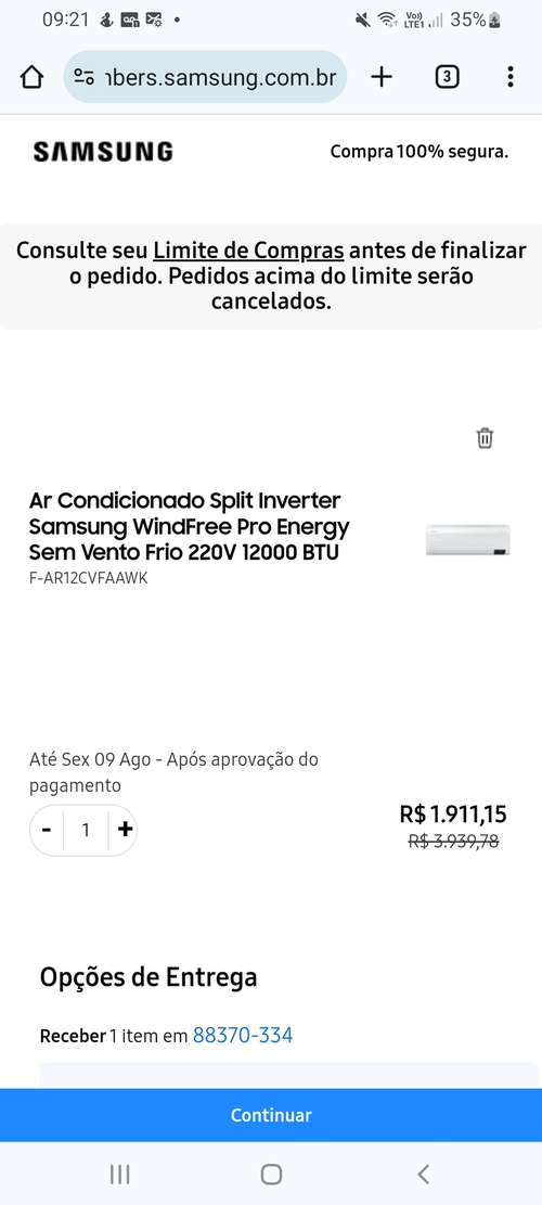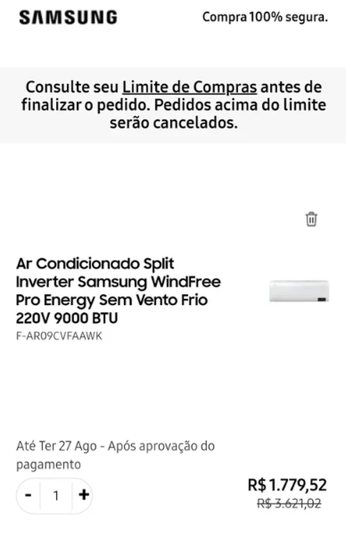 Uma boa oportunidade para que tem interesse no ar condicionado windfree pro energy, ou outros modelos da Samsung. O valor só é válido para pagamento via PIX, mas para quem está com o dinheiro disponível, o desconto vale muito a pena.