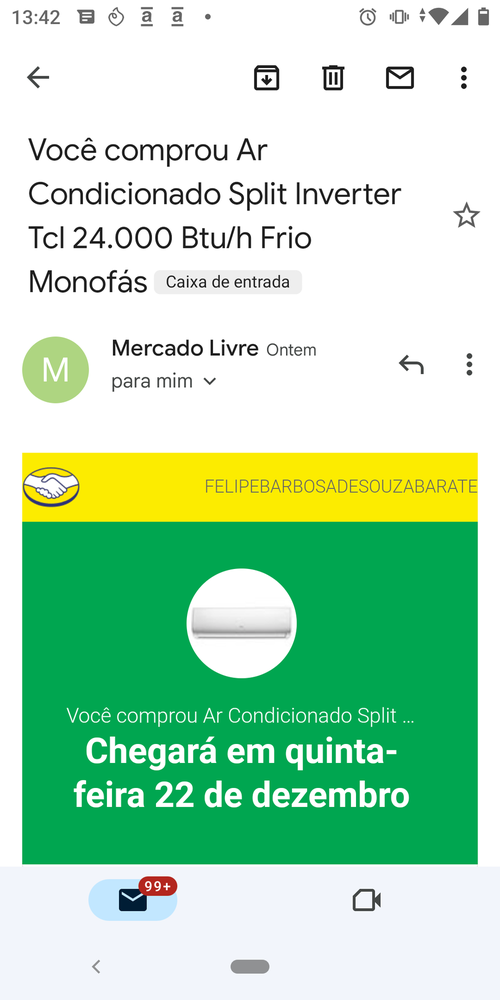 Solicitei a NF da compra junto ao site deles e realmente estão enviando o ar condicionado de 12 mil btu