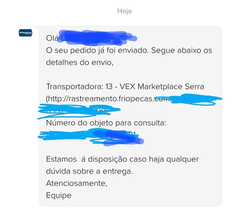 Acabei de receber a notificação do mercado livre infomando que o produto foi entregue, quando na verdade não foi. Ao entrar no rastreio fornecido pela frio peças, constatei que o produto foi despachado hoje 00:36 e devolvido para o remetente às 17:37. La vem dor de cabeça...