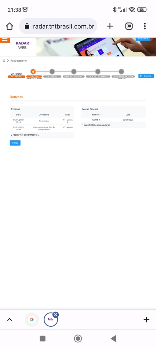 Cancelamento de fim de carregamento? Será que ainda vão fazer alguma sacanagem. Transportadora TNTMeu ar chegou hoje!