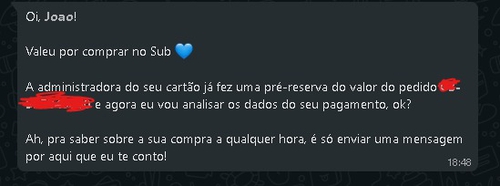 Já aprovou o pagamento, peguei um na Americanas e outro na Sub