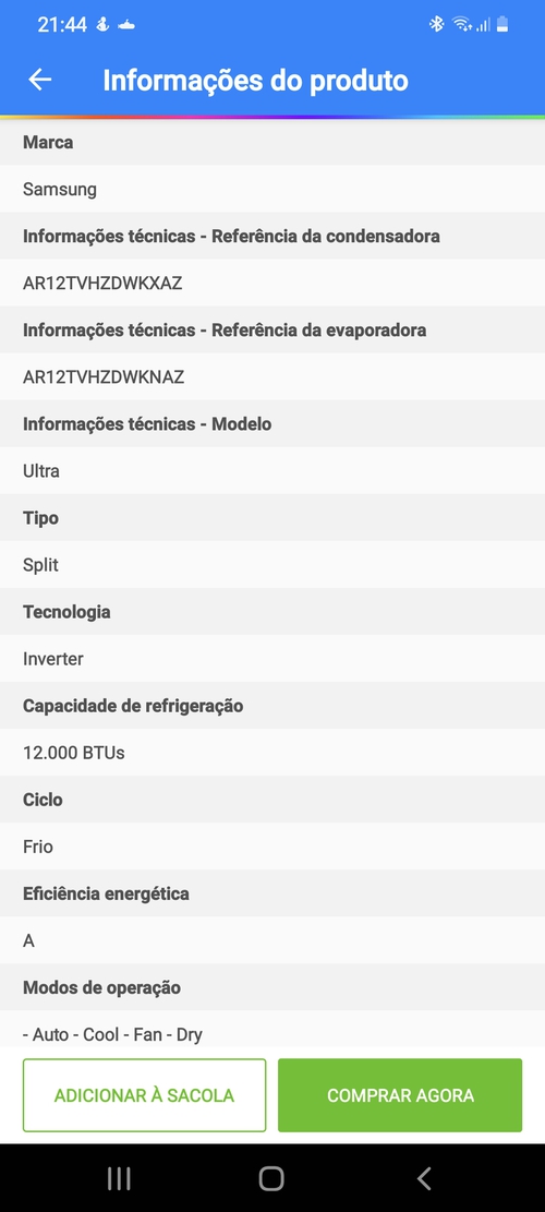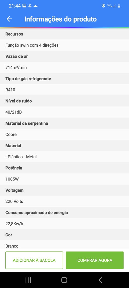 O anúncio das infos da magazine diz que o ar tem swing horizontal e vertical mas em automático somente o vertical. O horizontal é só manual. Não tem wifi nativo. Controle não tem iluminação e nem teclas que brilham no escuro etc