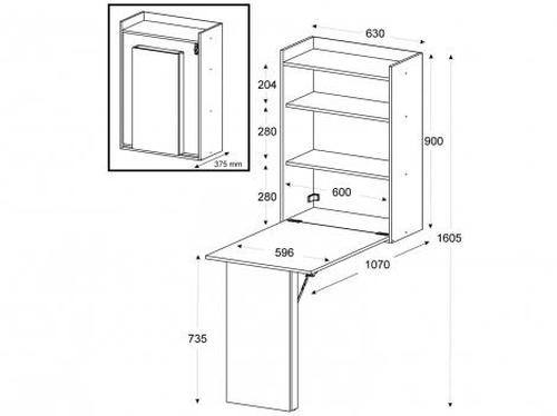 Armário com Mesa Dobrável de Parede - Multimóveis - R$129