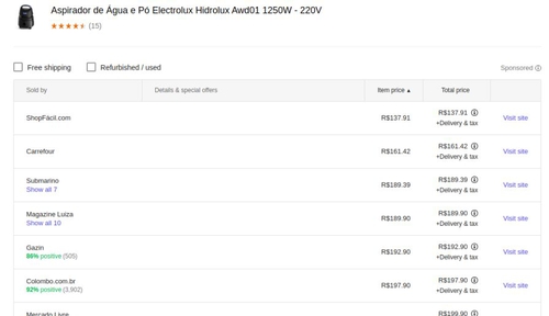 Aspirador de Água e Pó Electrolux Hidrolux AWD01 1250W 110V R$138