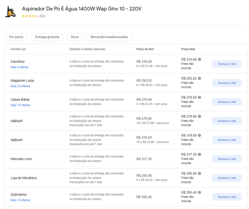 Menor preço segundo o Google Shopping