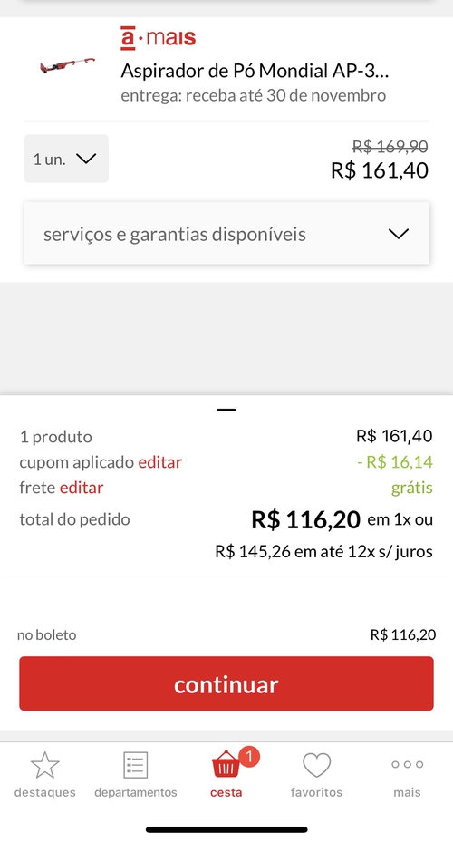 Esse deu 35 reais de frete. Ainda tô procurando um na promoção com frete geatis!
