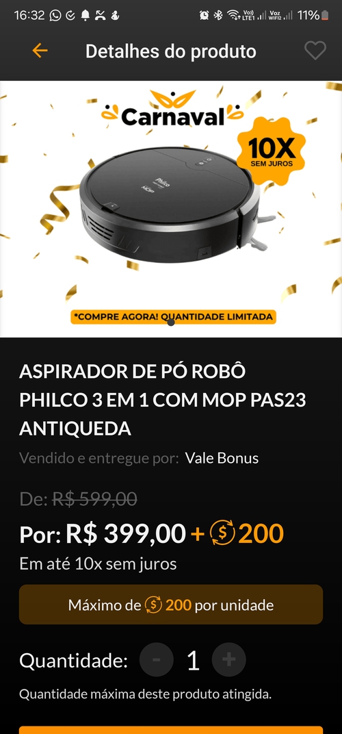 Essa promoção só aparece para quem não tem os bônus para comprar.