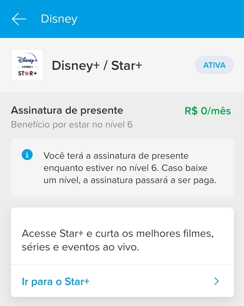 Assinatura de presente Disney+ e Star+ | Nível 6 Mercado Pago