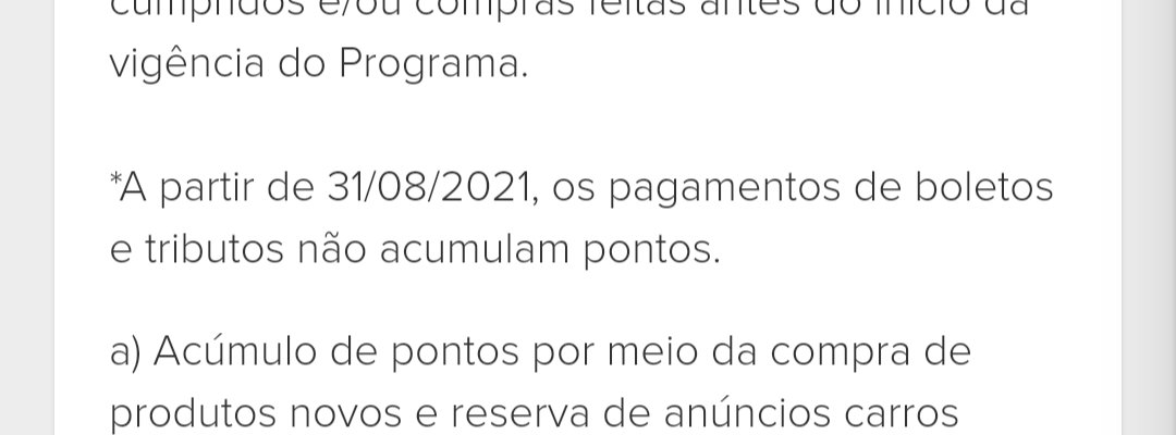 Lembrando que a partir do 31/08,pagamento de boleto e tributos nao irá acumular pontos