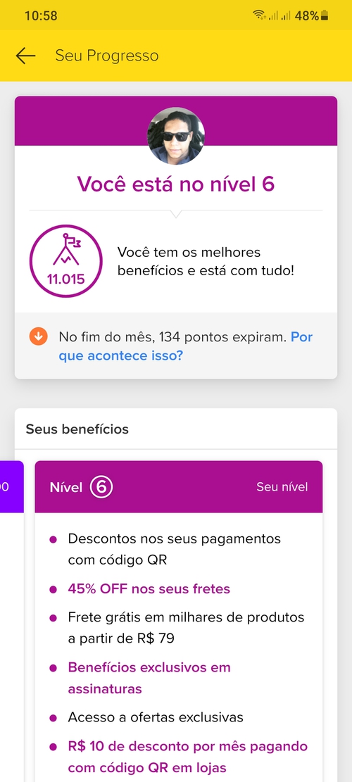 Consegui o nível 06 pela portabilidade de salário pro mercado pago. Só vitória
