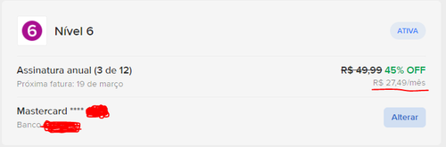 E eu que vou deixar de ser nível 6 e cair 2 níveis somente fim do mês. No dia seguinte não terá essa promoção que com toda certeza eu assinaria... 🤡🤡