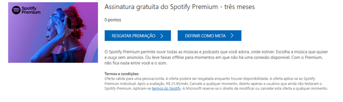 Assinatura gratuita do Spotify Premium - três meses (Microsoft Rewards, Apenas legíveis)