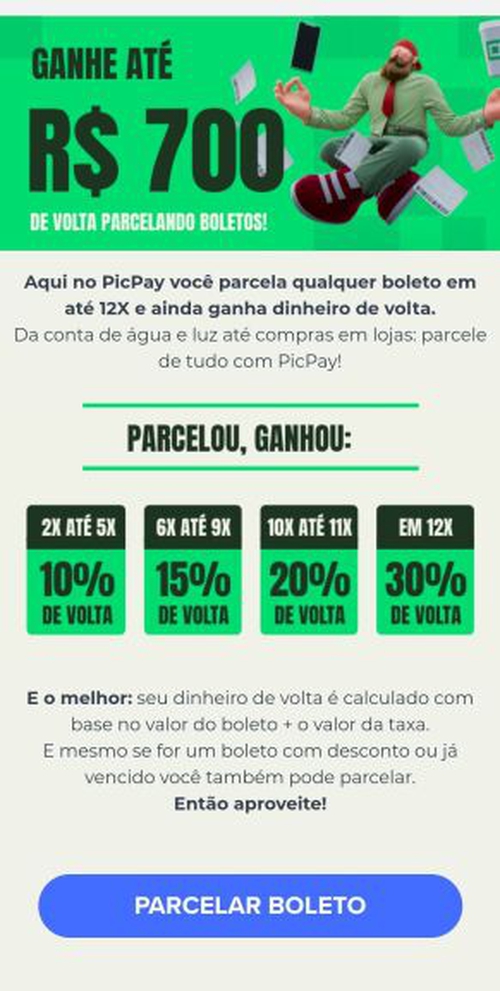 Até 30% de cashback pagando boletos - PICPAY