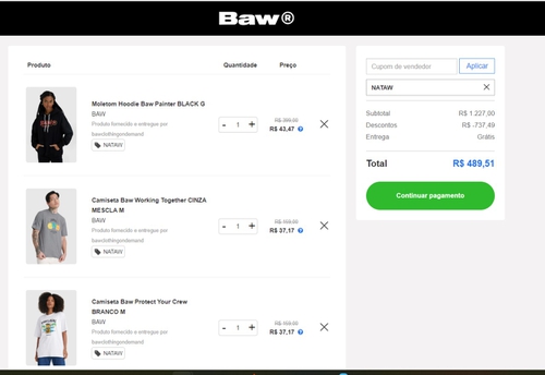 Até 80% OFF em peças selecionadas no site Baw Clothing