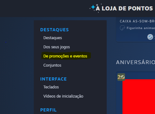 Onde fica loja de pontos na steam?