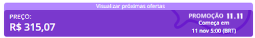 Segue o print do banner oferta programada para o dia 11.11 com o valor de 315,07: