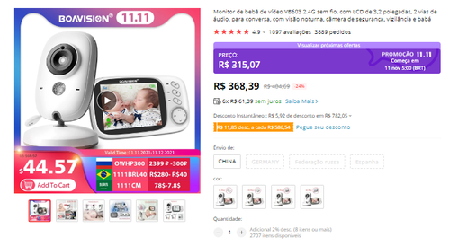 no dia 11.11 vai ter um desconto muito bom, então é bom já ir preparando tudo para efetuar a compra no dia