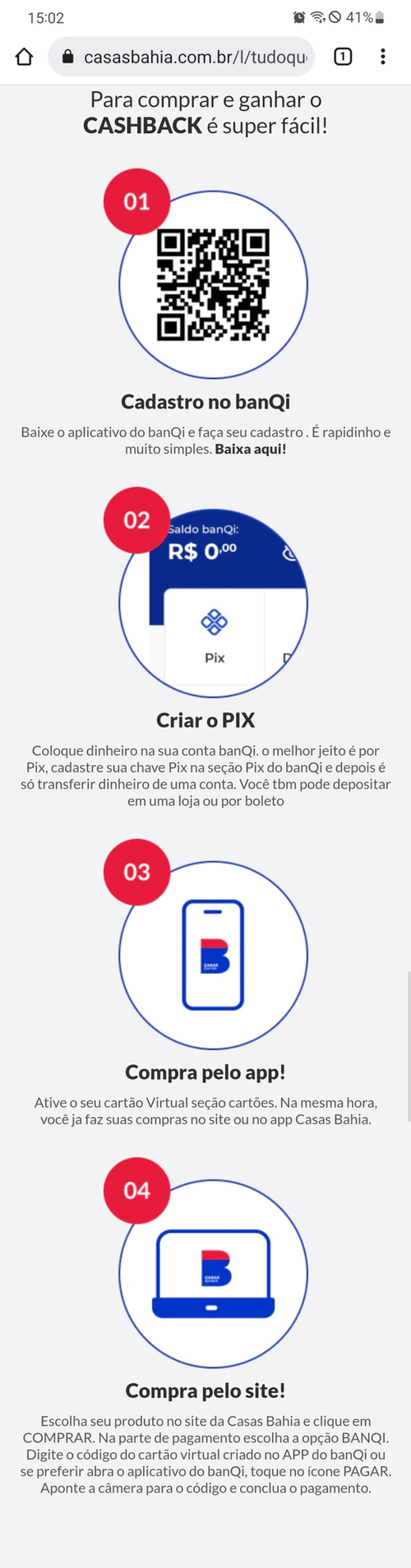 Só site das casas Bahia na hora de pagar coloquei pagar via banqi, depois de pagar apareceu notificação no aplicativo que o pagamento via qr code foi confirmado